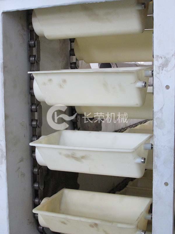 鏈斗輸送機(jī)是在封閉的殼體內(nèi),通過(guò)固定在鏈條上的斗輸送粉狀、小顆粒小塊狀、不能和金屬板接觸的散料以及易碎物料。能水平-垂直-水平立體輸送 。輸送時(shí)不損傷物料。鏈條和殼體體采用滾動(dòng)摩擦,功耗低。輸送平穩(wěn)、全封閉、無(wú)泄露、無(wú)污染。