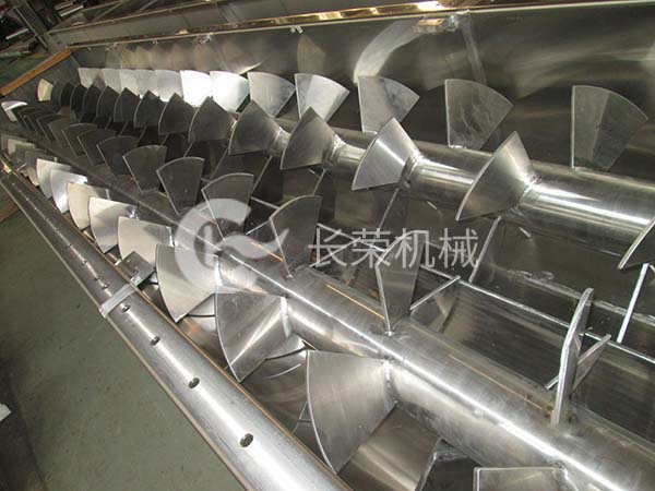槳葉螺旋輸送機可調(diào)節(jié)一定角度的槳葉,可以使物料破碎后得到完全混合并控制物料的流動。